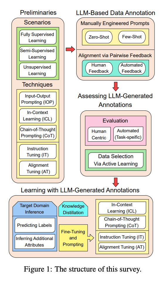 This paper presents a nice overview and a good list of references that apply LLMs for data annotation. It includes a taxonomy of methods that employ LLMs for data annotation. It cover three aspects: - LLM-based data annotation - Assessing LLM-generated annotations - Learning with LLM-generated annotations.